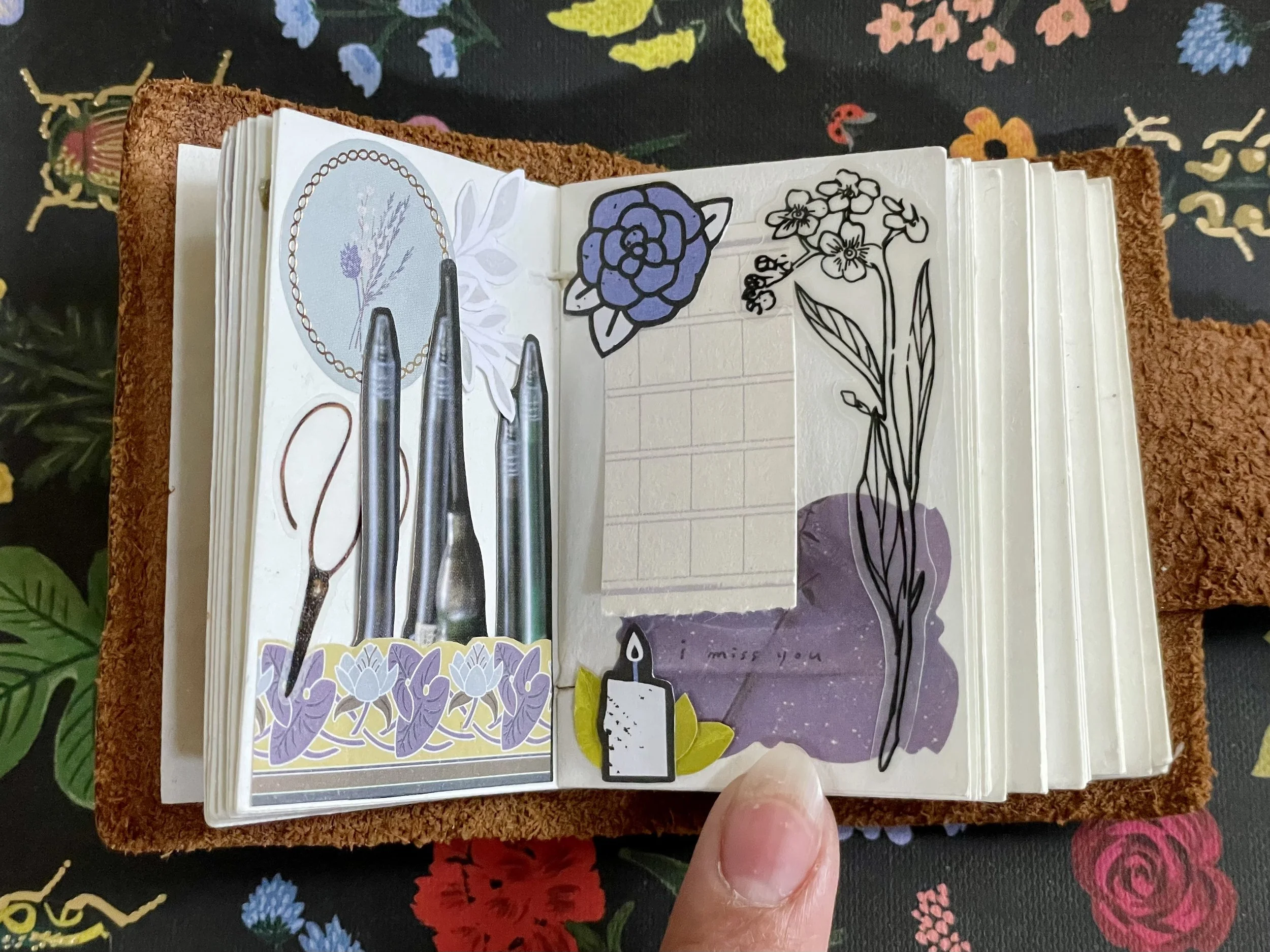 In my larger works, especially journal spreads, I try to leave space for writing. Sometimes I'm inspired to fill a page completely with stickers and paper, and then no writing is needed. These mini works follow the same idea, with a canvas as small as 2.5"×3" across two pages. However, it would be fun one day to try and work on a spread that does allow for tiny words too!